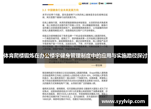 体育爬楼锻炼作为一种简单高效的运动形式,在办公楼宇健身管理制度中得到了越来越多的关注与应用。本文将从四个方面对体育爬楼锻炼在办公楼宇健身管理中的应用与实施路径进行详细探讨。首先,我们将分析体育爬楼锻炼的健康益处,以及它对职场人员身心健康的积极作用。接着,我们将探讨如何在办公楼宇中合理设计和引入体育爬楼锻炼机制,以促进其有效实施。然后,文章将讨论如何通过技术手段来支持爬楼锻炼的管理与监督,确保其达到预期效果。最后,我们将分析在实际实施过程中可能面临的挑战及应对策略,并提出一些改善建议。通过这些方面的探讨,本文旨在为办公楼宇健身管理提供有益的思路和参考。
